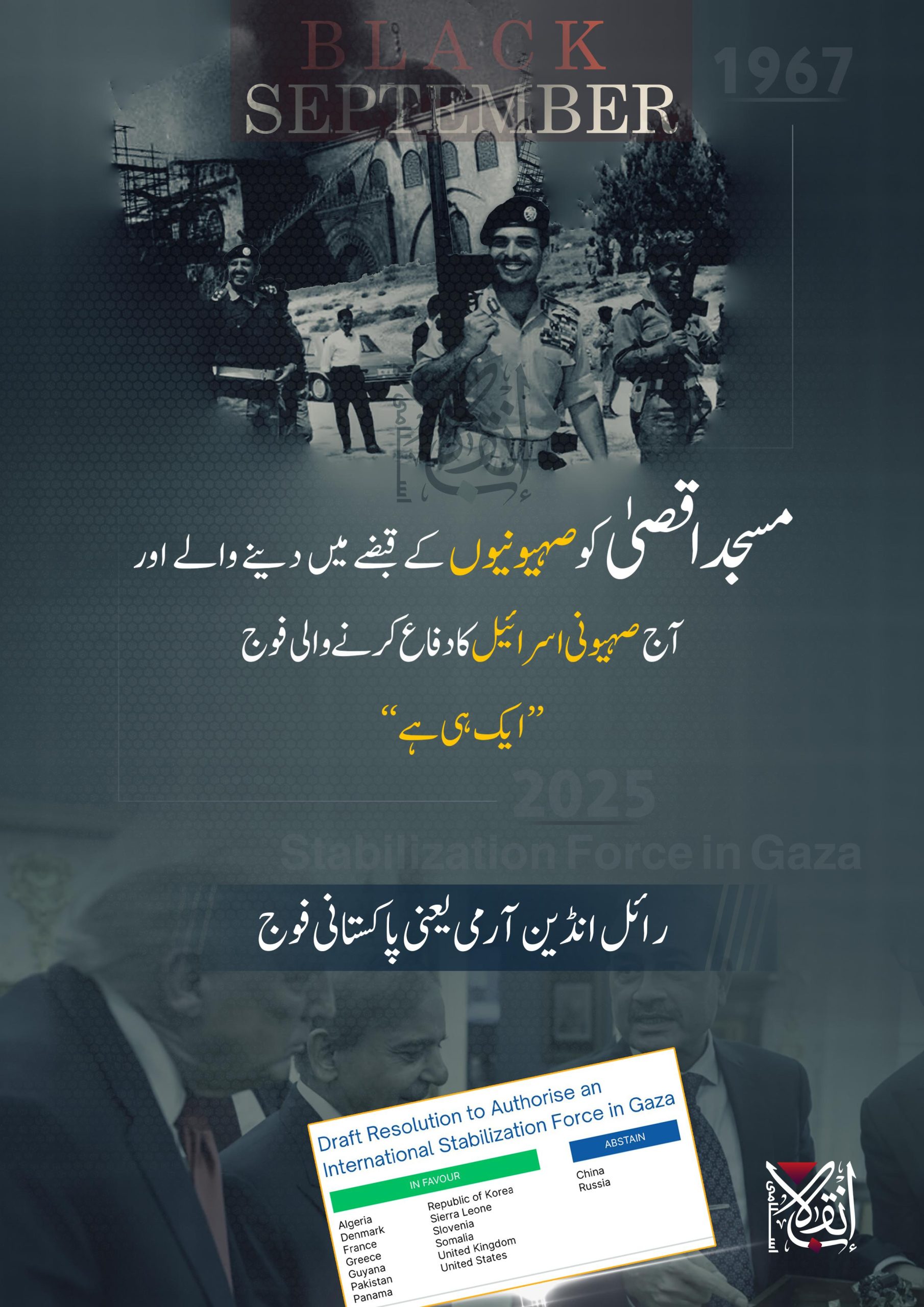 مسجد اقصی کو صہیونیوں کے قبضے میں دینے والے اور آج صہیونی اسرائیل کا دفاع کرنی والی فوج ایک ہی ہے۔